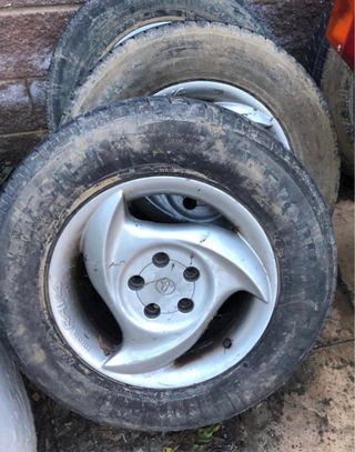 Llantas para Toyota con neumáticos. - Radio 14. - Originales de toyota. - Tapabujes en las 4 llantas.