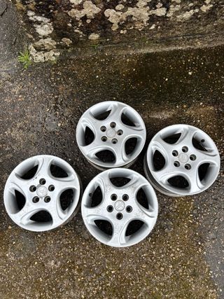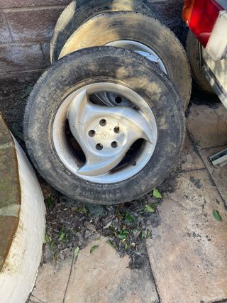Juego de llantas de aluminio para Toyota Avensis T22 de 1.999. Diseño de 5 radios y de cinco tornillos. Son de 14 pulgadas. Se pintaron en su día y se le está saltando la pintura. Precio Negociable. - Material: Aluminio. - Compatibilidad: Toyota Avensis T22.