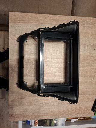 Embellecedor de plástico para la radio del Toyota Auris del año 2016. Pieza de color negro con detalles plateados. - Diseño elegante y funcional. - Se adapta perfectamente al interior del vehículo. sin ningún rasguño está sin usar, la compré y me quedé con la vieja al final, tiene algún resto de pegamento como se puede ver en la foto ( se ve que lo usaron para fijar el embellecedor al coche)