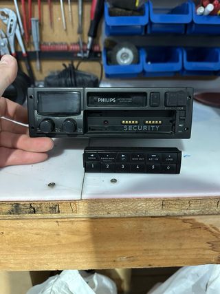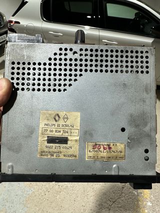 Radio original de los Renault de los 90, valida para R19, R21, Clio, etc. Lleva código de seguridad y el frontal extraible.