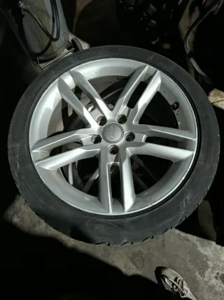 Juego de llantas Audi de 18 pulgadas con neumáticos. Al 80% Son originales - Diseño deportivo de 5 radios. - Incluye neumáticos.