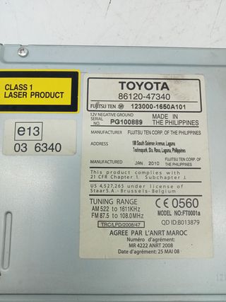 SISTEMA AUDIO / RADIO CD TOYOTA PRIUS (NHW30)