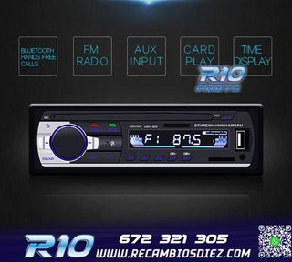 Móvel: 672 321 305 - Referencia: MUL100096. RADIO 1DIN BLUETOOTH MP3 USB SD AUX Características: Radio 1DIN universal. Diseño elegante, acabo en color negro y PVC dando mayor dureza a la superficie. Bluetooth Radio AM y FM. Puerto USB y Tarjetas SD. Especificaciones: Radio: Radio AM/FM: Búsqueda y almacenamiento automático en AM / FM. Entradas / Puertos: Puerto Tarjetas SD/MMC: x1, soporta hasta 32 GB. Puerto USB 2.0 para conexión de Memorias USB, soporta hasta 32 Gb. 4 Salidas de Audio FL/FR/RL/RR (Frontal Izq y Der, Trasero Izq y Der) Entrada de antena. Otros: 3 años de Garantía
