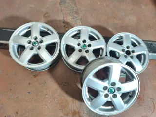 Juego de 4 llantas de aleación plateadas con diseño de 5 radios y logo de Skoda en el centro. - Diseño de 5 radios. - Acabado plateado. - Logo de Skoda. Sirven para todo tipo de coche grupo BVG