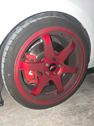 Juego de llantas JR3 en color rojo. Diseño deportivo y llamativo. - Llantas de aleación. - Color rojo vibrante. - Diseño de 6 radios. - Se venden sin neumaticos. - 2 llantas con arañazos superficiales. - Anterior color blanco.