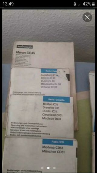 Varios Libros o manuales radio blaupunkt clasicos tal cual en buen estado precio por unidad para (MERAN , BOSTON , SAN REMO , VERONA , MODENA , MUNCHEN , ETC ) También Mod RDS 24 VI para camiones Renault Truck 24v . Se envía pero no por wallapop . Pago por bizum o contado . Ni pujas ni nada .