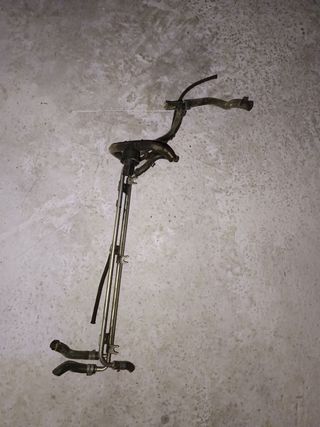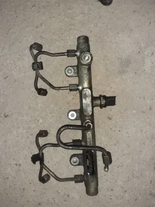 Rampa de inyección para motor 1.9 TDI. Se encuentra en buen estado, aunque muestra señales de uso. - Pieza usada. - Para motor 1.9 TDI. - Incluye tubos y conexiones.