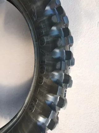 Neumático para moto Gas Gas EC del año 2007.Mitas c18 en muy buen estado. Paramanos, casquillos rodamientos reten horquilla etc recambios varios. Escape bufanda original para reparar.La pantalla no funciona. - Medida 110/100-18. - Diseño de tacos para off-road.