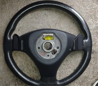 Volante deportivo para Audi A3 8P con levas integradas. - Diseño ergonómico. - Acabado en cuero negro.