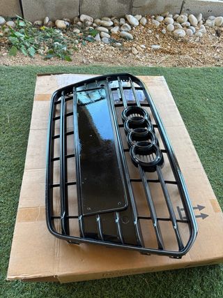 Parrilla delantera para Audi A5 B8.5 en acabado negro brillante. - Diseño deportivo. - Incluye emblema y soporte para sendores de aparcamiento buen estado en general , todos sus soportes y grapas