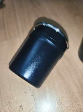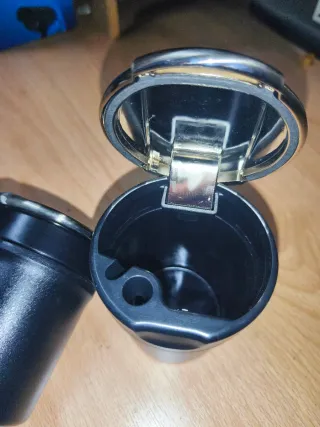 2 X Cenicero portátil para coche, diseñado para modelos Audi. Su acabado negro y tapa cromada le dan un toque elegante. No son originales. Tienen algún pequeño arañazo superficial superior, nada importante. Nunca usados. Precio por el pack de 2. Altura 11cm Diámetro base 7,2cm - Diseño con tapa abatible. - Compartimento interior. - Soporte para cigarrillos.