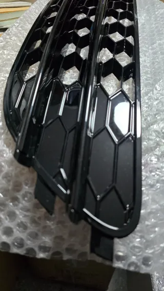 Cubiertas para las rejillas de los faros antiniebla de Audi, con un acabado en negro brillante y diseño de panal estilo RS6. A6 C7 2012-2015 - Diseño de panal. - Acabado negro brillante. A estrenar nuevo