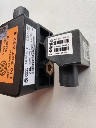 Sensor de tasa de guiñada (Yaw Rate Sensor) para vehículos del grupo VAG. - Número de pieza: 1J0 907 657 B - Compatible con modelos VW, Audi y Skoda. Soldado y reforzado cabeza del sensor y varios componentes , algunos cambiados,no compres de desguace ya que van a estar peor que el tuyo despues de mas de 20 años los sensores estan calcinados.