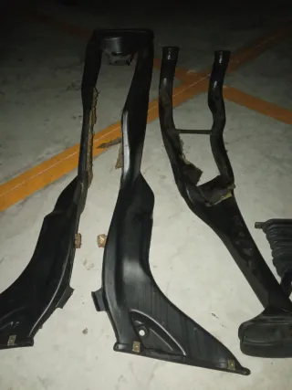 Conjunto de conductos de aire para Audi A6 C4 y 100, van a la rejilla trasera de la consola del freno de mano y por debajo de los asientos delanteros hacia atras. - Piezas de plástico negro. - Incluye fuelle de goma del salpicadero