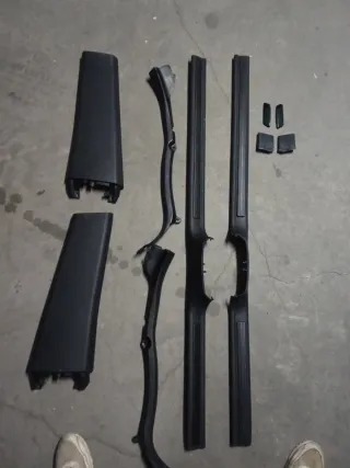 Conjunto de piezas de plástico para el interior de un Audi A6 C4 o Audi 100, son las molduras de los bajos de las puertas, pilares centrales, y los del respaldo de los asientos de atrás a cada lado, los 4 pequeños de la carrocería no disponibles.
