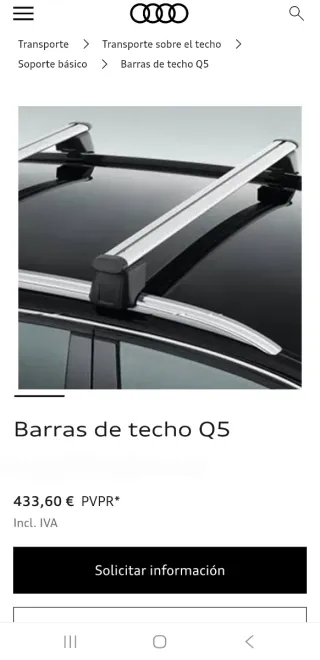 Barras de techo para Audi Q5. - Referencia: 80a.860.019 Producto nuevo a estrenar