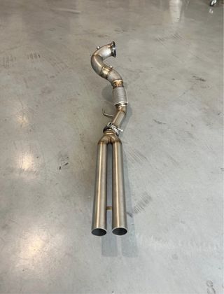 Downpipe de acero inoxidable para Audi RS3 400. - Fabricado en acero inoxidable de alta calidad. - Diseño optimizado para mejorar el flujo de gases. - Incluye flexible para mayor adaptabilidad.