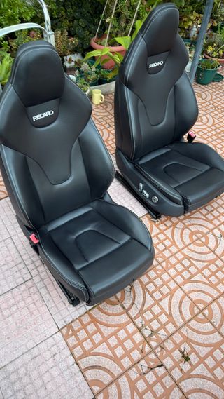 Asientos deportivos semibuckets Recaro de audi rs5, compatibles con Audi RS3, RS4 y RS5.,estaban montados en un a3 3.2 v6 de 2007,funcion electrica,calefactables,luz debajo de los asiento y plegables con boton de desplazamiento para los 3P,perfecto estado,se podrian instalar en golf 5 gti,golf 6 gti golf 6R,R32,etc,validos para plataforma pq35 y para mqb,tienen todas las opciones,cajones bajo los asientos y base desplegable para el apoyo de las piernas,si es cerca podria montarlos yo mismo en cualquier PQ35,golf 5 golf 6 etc.NEGOCIABLE. - Tapicería de cuero negro. - Costuras blancas. - Logos Recaro bordados.