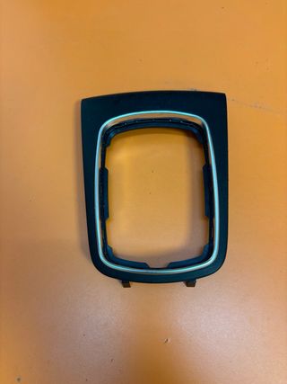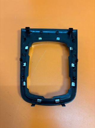 Embellecedor para la caja de cambios de un Audi A3 8L del año 2002. - Pieza de plástico negro con borde plateado. - Diseño rectangular con interior abierto.