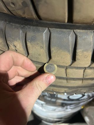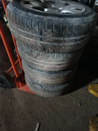 Juego de llantas de aluminio procedentes de un Audi A4 con neumáticos están casi para cambiar .