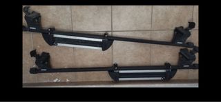 Barras de techo marca Thule para Audi A6, modelo de los años 2004 a 2009. - Diseño aerodinámico. - Fabricadas en aluminio y plástico negro. Se vende junto con el porta esquíes o posibilidad de por separado. junto 95€ separado 70€ las barras 39€ el porta equis