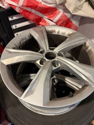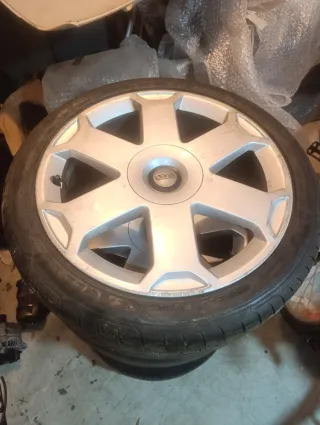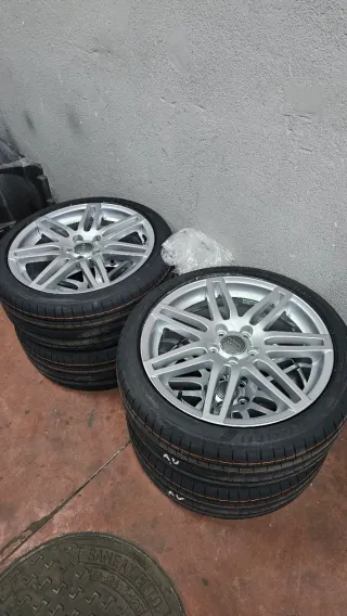 Juego de llantas Audi Q5 S-Line. los neumaticos 2 estan practicamente nuevos y los otros 2 a un 40 porciento de vida las llantas también prácticamente son nuevas pertenecen de un Audi Q5 Sportback con el paquete S line cualquier consulta por whatsapp al 675564339 - Acabado plateado brillante. - Logo de Audi en el centro.