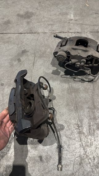 Conjunto de frenada delantera de VW Golf R20, perfecta para aumento de frenada en grupo wag como Gti, audi A3, touran... - Pinzas delanteras Completas - Latiguillos metálicos delanteros y traseros - Pistones y retenes en perfecto estado - Se quita por aumento de frenada