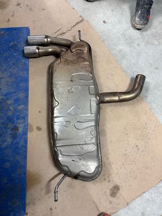 Se vende tramo final original de volkswagen scirocco 170 tdi original (es igual que el silenciador de 140cv) también vale para Golf 6, audi a3, passat... desconozco si también vale para los modelos tsi/tfsi. Referencia en la última foto, hago envíos. Posibilidad de vender con el difusor original.