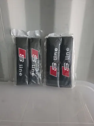 Pack de dos almohadillas para el cinturón de seguridad con el logo de Audi S Line. 7€, cada pack de 2 unidades. Las 4 unidades,10€ - Diseño en negro con detalles en rojo y blanco. - Acabado imitación fibra de carbono.