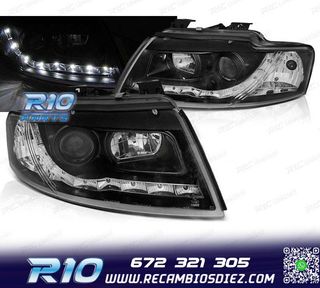 FAROS AUDI A4 B6 00-04 LUZ DIURNA LED FONDO NEGRO