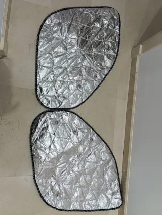 Protector térmico interior para autocaravana Fiat Ducato. Diseñado para ofrecer aislamiento. - Material plateado reflectante. - Borde con acabado trenzado. - Incluye ventosas para sujeción.