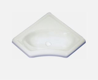 Lavabo mini esquinero 35 x 35 cm Lavabo de esquina de pequeñas dimensiones, destinado a zonas de un ángulo de 90º. El diámetro del orificio de desagüe es de 30mm. Material: Plástico resistente Color: Blanco Dimensiones: 350mm x 350mm x 116mm Nuevo. Se compró y no se llegó a instalar. Trae un plástico protector que aún no se ha retirado.