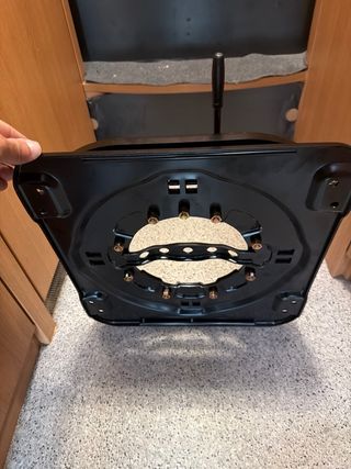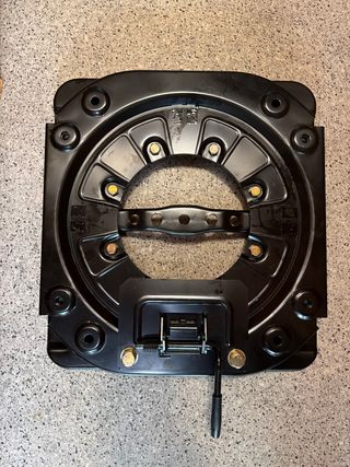 Base giratoria para asiento de camper, autocaravana o furgoneta. 36 cm por 39 - Material: Metal resistente. - Color: Negro. - Mecanismo de giro. - Incluye palanca de bloqueo.