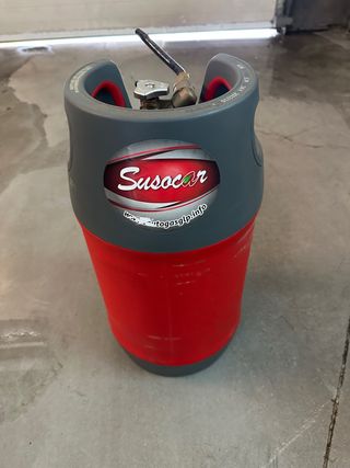 Botella de Gas Licuado de Petróleo (GLP) de la marca Suso Car. - Color rojo y gris. - Con válvula de seguridad.