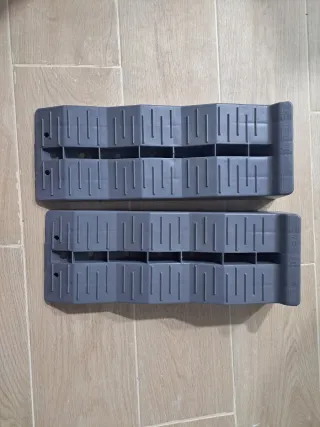 Calzos para autocaravana, ideales para nivelar tu vehículo. - Fabricados en material resistente. - Diseño en color rojo y negro.