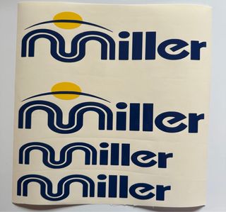 Vinilos decorativos con el logo de Miller, perfectos para personalizar tu autocaravana o caravana. Dale un toque único a tu vehículo. - Diseño clásico de Miller. - Incluye varios vinilos. - Color azul y amarillo. -Medidas 28 x 8cm. -Medidas 23 x 3,3cm -Otras medidas consultar. -Color a elegir.15