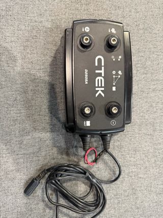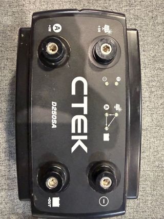 Cargador de baterías Ctek D250SA. - Modelo D250SA. - Diseño compacto y robusto. - Precio nuevo 350€ - Caravanas y camper D250SA es un cargador totalmente automático de 5 etapas que suministra hasta 20 A. batería 12 V desde 40 Ah hasta 300 Ah, incluyendo baterías húmedas, EFB, MF, Ca/Ca, AGM y Gel. Tiene voltajes de carga seleccionables para baterías AGM. En sus dos entradas puede usar energía de alternador, de panel solar y de aerogenerador. Cuando la batería de servicio está totalmente cargada, el D250SA redirige automáticamente la energía de carga de mantenimiento a la batería de arranque. Autocaravana. camper Camperizada.