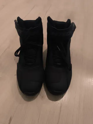 Botas de moto R Tech diseñadas para el verano. Son negras y de caña media. De reestreno. - Material exterior sintético. - Cierre con velcro y cremallera. - Suela de goma antideslizante. Alpinestars dainese Revit spyke spidi ixon Armure bela caberg hjc BMW Ducati schuberth Nolan