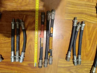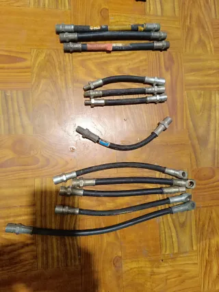 Conjunto de latiguillos hidráulicos para coches clásicos. - Material: Goma y metal. - Conexiones roscadas.
