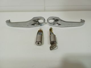 Juego de manetas cromadas de metal y bombines originales Renault 4 (10/1961-12/1993). - Dos manetas de puerta. - Dos bombines con sus llaves.