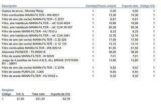 Lote de filtros Mann para coche. - Filtro de aceite Mann. - Filtro de aire Mann. - Filtro de combustible Mann.
