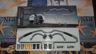 Percha para colgar ropa en el coche. Ideal para mantener las prendas sin arrugas. - Fabricada en metal cromado. - Incluye accesorios de montaje.