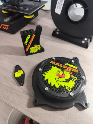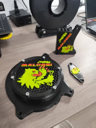 Kit de tapa de encendido de la marca Malossi. Incluye varias piezas decorativas con el logo del malossi - Tapa principal con rejilla y logo. - Tapa para anular motor de arranque. - Recogedor de líquidos Polini, top, voca, yasuni, 2fast, jog, aerox, competición, circuito, preparación, stage6