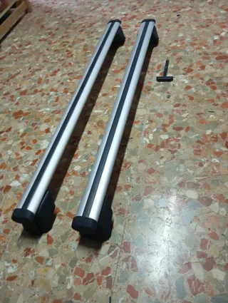 Juego de barras portaequipajes de aluminio para Audi Q5. Diseñadas para complementar el diseño del vehículo. - Material: Aluminio. - Color: Plateado con detalles en negro. - Incluye herramienta de montaje.