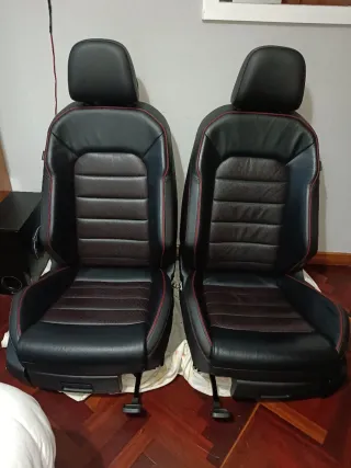Asientos delanteros para Golf 7.5 GTI Performance. - Tapicería de cuero . La zona de respaldo y butaca son cuero perforado . costuras rojas. - Asientos calefactables. Estan en perfecto estado