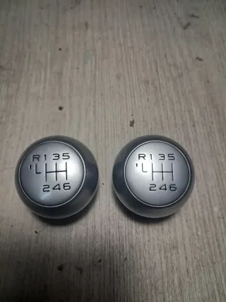 Dos pomos de palanca de cambios para coche, con diseño universal. - Incluye esquema de 6 marchas + R. - Acabado plateado mate. 18€ cada uno, 30€ los dos