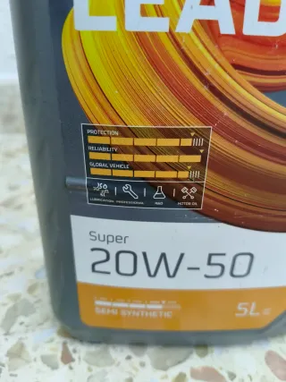Aceite de motor Repsol LEADER 20W-50. - Envase de 5 litros. - Grado de viscosidad 20W-50. Sin abrir, precintada. Nueva.