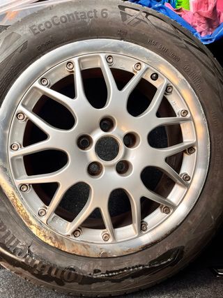 Centro de llanta de la marca BBS, modelo 771. Una unidad Se vende toda la llanta con la tornillería incluida, pero la parte del aro y neumático son irreparables. El centro se encuentra en perfectas condiciones salvo un pequeño rayón. 5x100 ET42 61/2J x 16H2