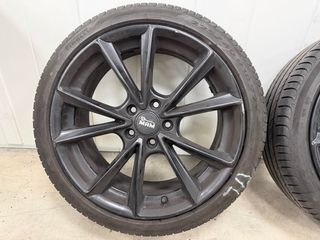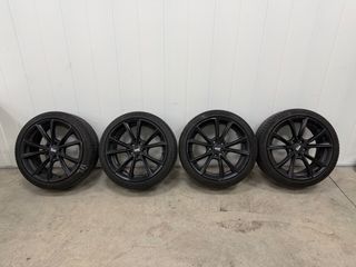 Juego de 4 llantas negras de 18 pulgadas con anclaje 5x112, compatibles con vehículos del grupo VAG ( SEAT AUDI SKODA VOLKSWAGEN ) con neumaticos 225 40 R18 del año 2022 a mas de media vida. ET 45. TIENEN ALGUN ROCE PEQUEÑO DE BORDILLO