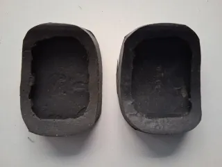 Juego de gomas para los pedales de freno y embrague de un coche antiguo. Están hechas de goma negra con un diseño de estrías para un mejor agarre. Precio por las 2 - Material: Goma. - Color: Negro. - Diseño: Estrías verticales.